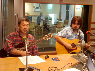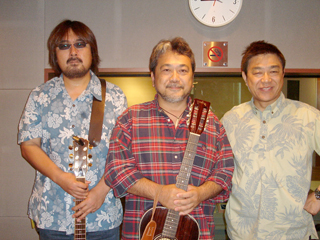 ハワイアンサウンドと湘南ポップスを融合。浜辺のフォークシンガーTemiyanさん(中央)とギターの名手、友常正巳さん。
